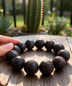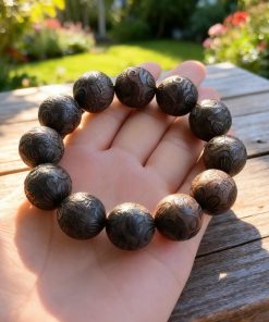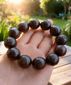 Vòng tay gỗ đàn hương đen hạt khắc 2 cm tối giản
