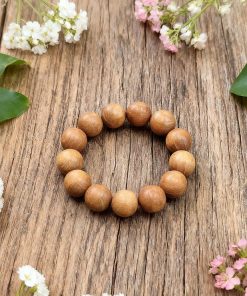 Vòng tay gỗ đàn hương hạt 2 cm nâu sáng nam