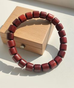 Vòng tay gỗ tự nhiên hạt vuông trụ 0.8 cm nâu đỏ