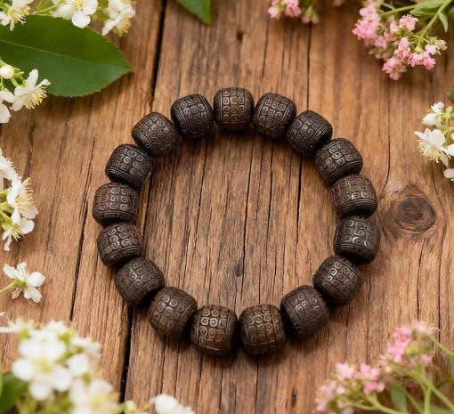 Tối giản mà nổi bật với vòng tay gỗ tự nhiên hạt khắc 1.3 cm – tông nâu trầm dễ phối, hạt trụ tròn khắc hoa văn tạo điểm nhấn, đeo thoải mái hằng ngày hoặc khi đi làm, dạo phố. Phù hợp cả nam và nữ. Made in Vietnam.